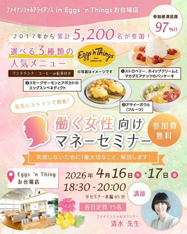 働く女性向けマネーセミナー in Eggs ‘n Things お台場店